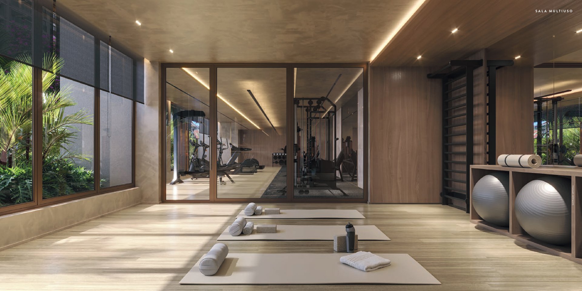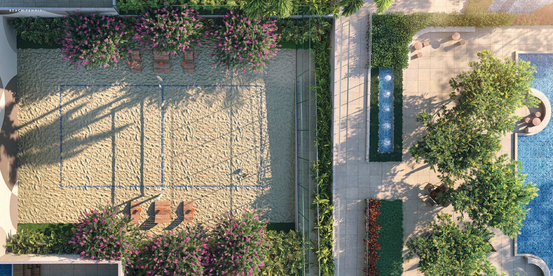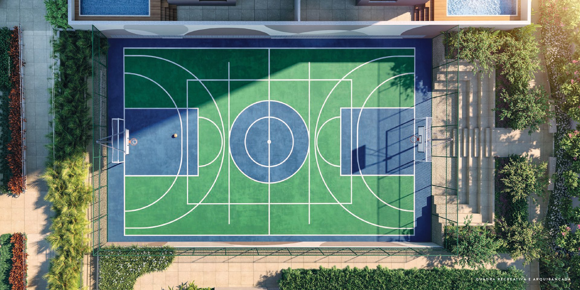 Operação profissional terceirizada com gestão das aulas em todos os espaços destinados às atividades físicas e esportes dos moradores.