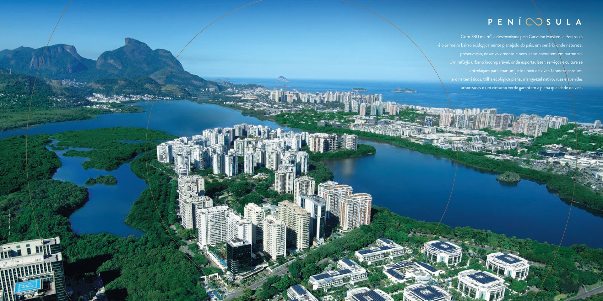 Com 780 mil m², e desenvolvida pela Carvalho Hosken, a Península é o primeiro bairro ecologicamente planejado do país, um cenário onde natureza, preservação, desenvolvimento e bem-estar coexistem em harmonia.